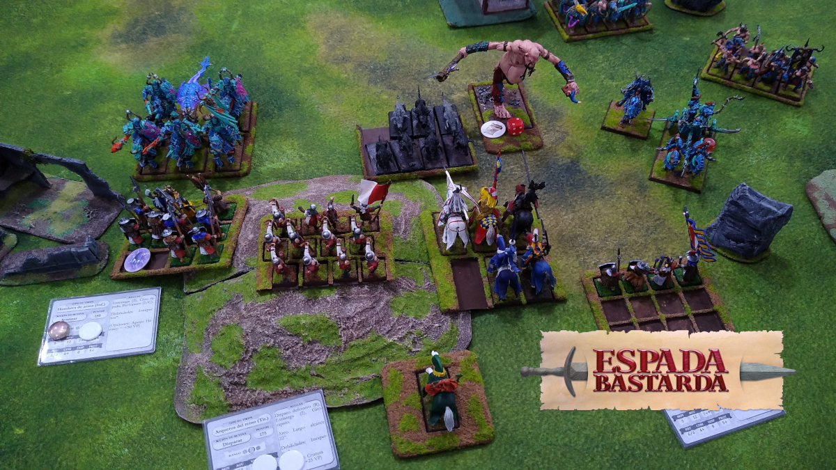 Aquí Felipe: Continuamos paso a paso y hoy le hemos pedido a Claudio que muestre cómo se desarrolla una partida de Espada Bastarda. Por lo que aquí tenéis un informe completo de una partida real en la mesa de batalla. ¡Pruebas de uno de los posibles escenarios a añadir al Libro de reglas!:
